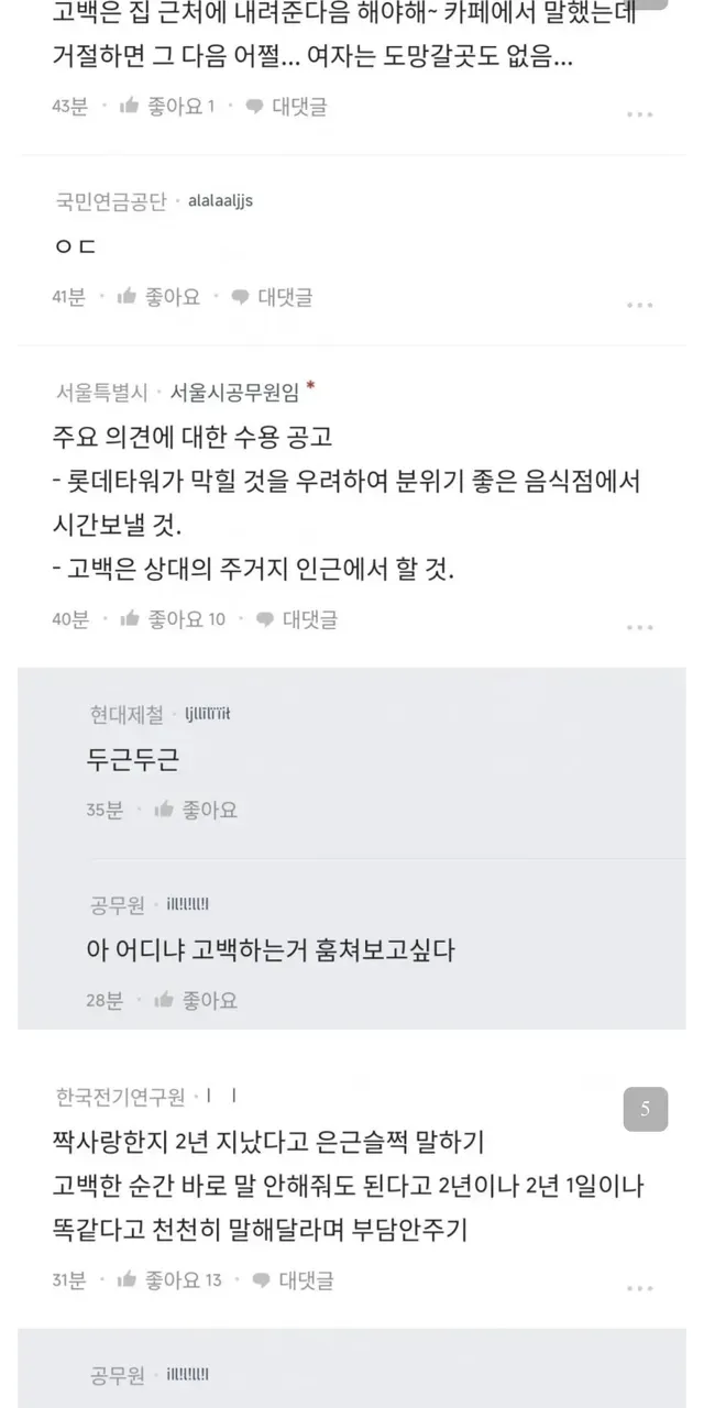 저녁 직장동료 여직원에게 고백갈긴다는 서울시 공무원.blind,,