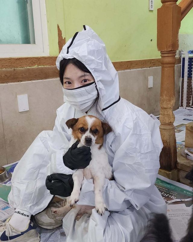 공개된 사진에는 유기견 보호소에서 봉사활동을 하는 장재인의 모습이 담겼다. 또 다른 사진에서는 파란 셋업을 입고 몽환적인 분위기를 자아내고 있다.