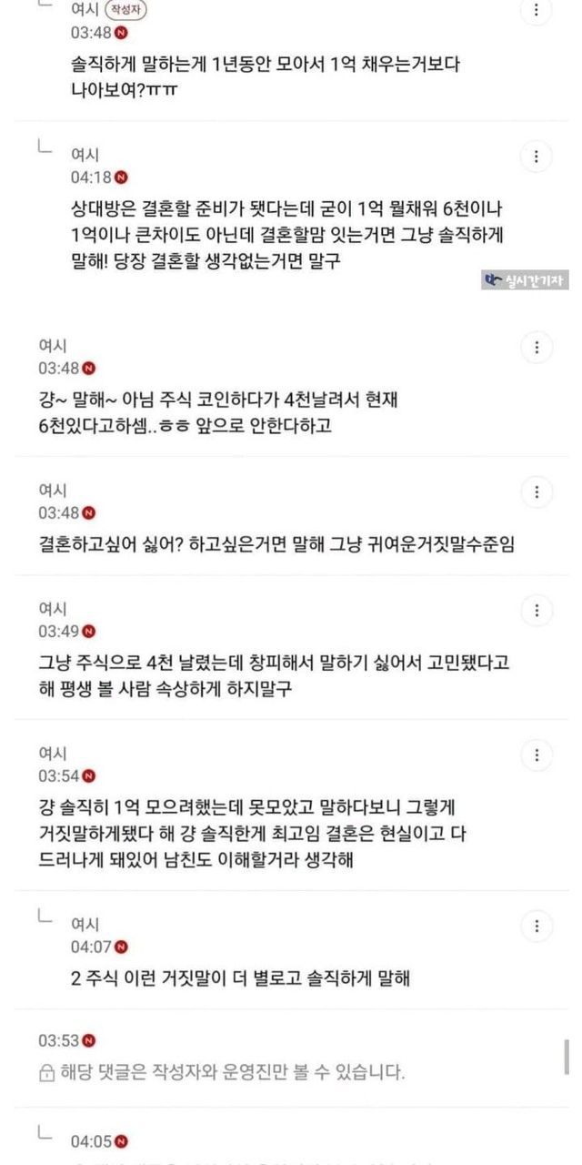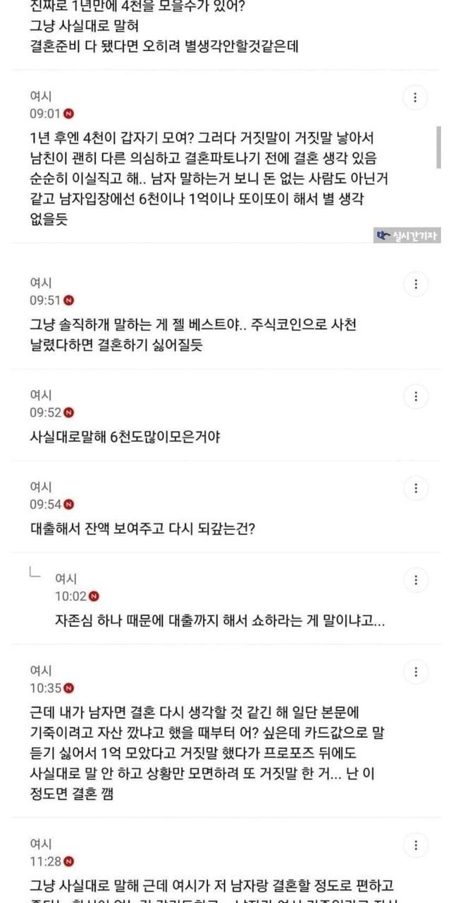 남친이 결혼얘기 하는데 거짓말 때문에 고민인 여시