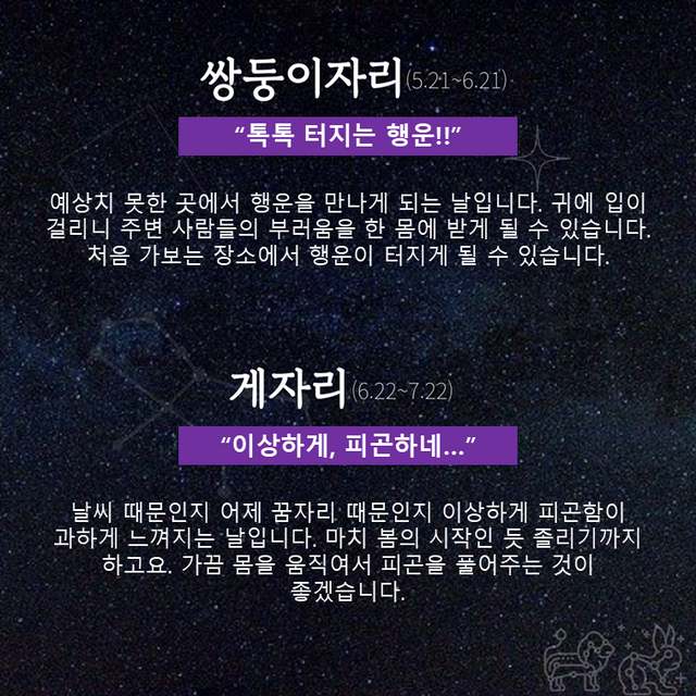 Δ 쌍둥이자리 : 톡톡 터지는 행운!!