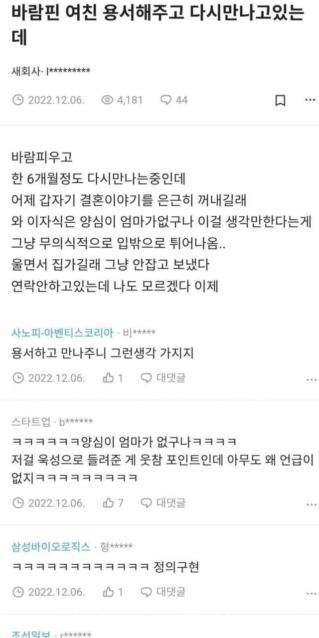 바람폈던 여친이 결혼을 원한다