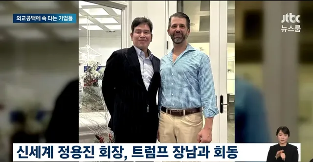 트럼프 주니어는 개인적으로 정용진을 보기위해 올해만 총 3번 방한했으며 방한 중엔 순복음교회에 방문해 직접 예배까지 드림