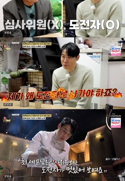 최현석은 "근데 도전자라는 거다. '제가 왜 도전자로 나가야 하냐'라고 물었더니, PD 님이 '최 셰프님은 심사위원보다 도전자가 멋있어 보인다는 거다"라고 당시를 회상했다.