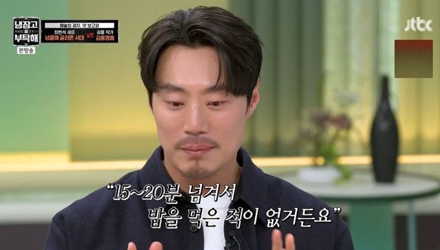 이희준은 까다로운 입맛을 설명하며 “아내가 중식을 좋아한다. 저는 맵고 짠 음식 말고 담백하고 건강한 맛을 좋아한다”고 밝혔다. 이혜정이 해준 요리 중에 미역국을 좋아한다고. 이희준은 “제 와이프도 거의 모든 요리를 15분 만에 한다”고 자랑했고, 송중기 역시 “형수가 요리를 심각하게 잘한다. 집에 가면 끊임없이 요리가 나온다”고 거들었다.