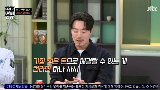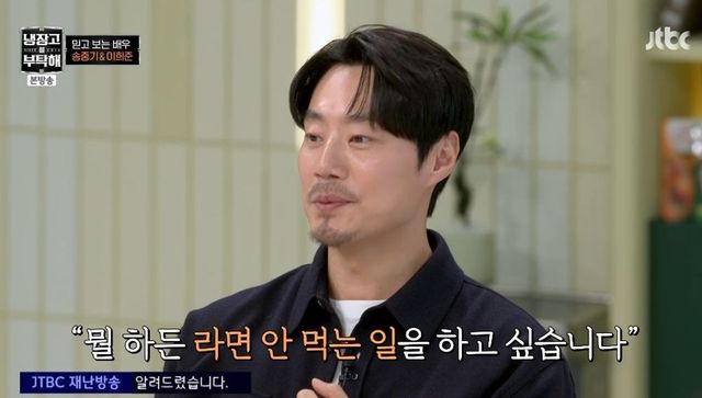 이날 영화 ‘보고타’의 주역 송중기와 이희준이 등장했다. 데뷔 20년 차 배우인 이희준은 무명 시절 기억 때문에 라면을 안 먹는다고 고백했다. 이희준은 “연극할 때 라면만 먹었다. 고시원 살 때 밥은 있었다. 컵라면 사서 아침에 면을 먹고 국물은 냉장고에 넣어놓고 저녁에는 밥을 말아서 먹었다”고 털어놓았다. 그는 “한예종 입시 면접에서 ‘배우가 안 되면 뭘 할 거 같아요’라고 물어보길래 ‘뭘 하든 라면을 안 먹는 일을 하고 싶다’라고 했다. 그래서 붙은 것 같다”고 힘들었던 당시를 떠올렸다.