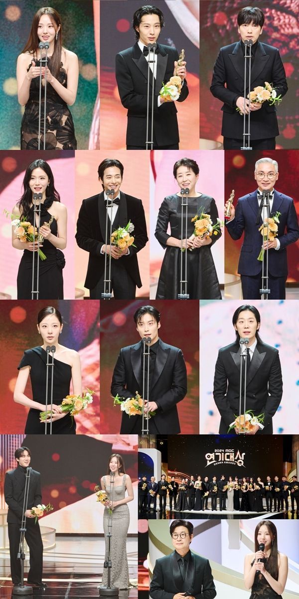 또한 드라마 명가라는 명성에 걸맞게 2024년 한 해 동안 일일드라마부터 단막극, 금토드라마까지 매주 안방에 새로운 재미를 선물했던 만큼 여러 작품의 주역들이 수상의 기쁨을 누렸다. ‘백설공주에게 죽음을-Black Out’은 베스트 액터상의 변요한을 비롯해 신인상, 남녀 조연상, 베스트 캐릭터상을 받으며 5관왕을 차지했다. ‘지금 거신 전화는’은 우수 연기상, 베스트 커플상, 신인상까지 총 4개의 트로피를 받았고 ‘수사반장 1958’의 배우들은 올해의 드라마상, 우수 연기상에 이름을 올렸다. ‘밤에 피는 꽃’ 역시 우수 연기상, 남녀 조연상까지 총 4관왕에 성공했다.