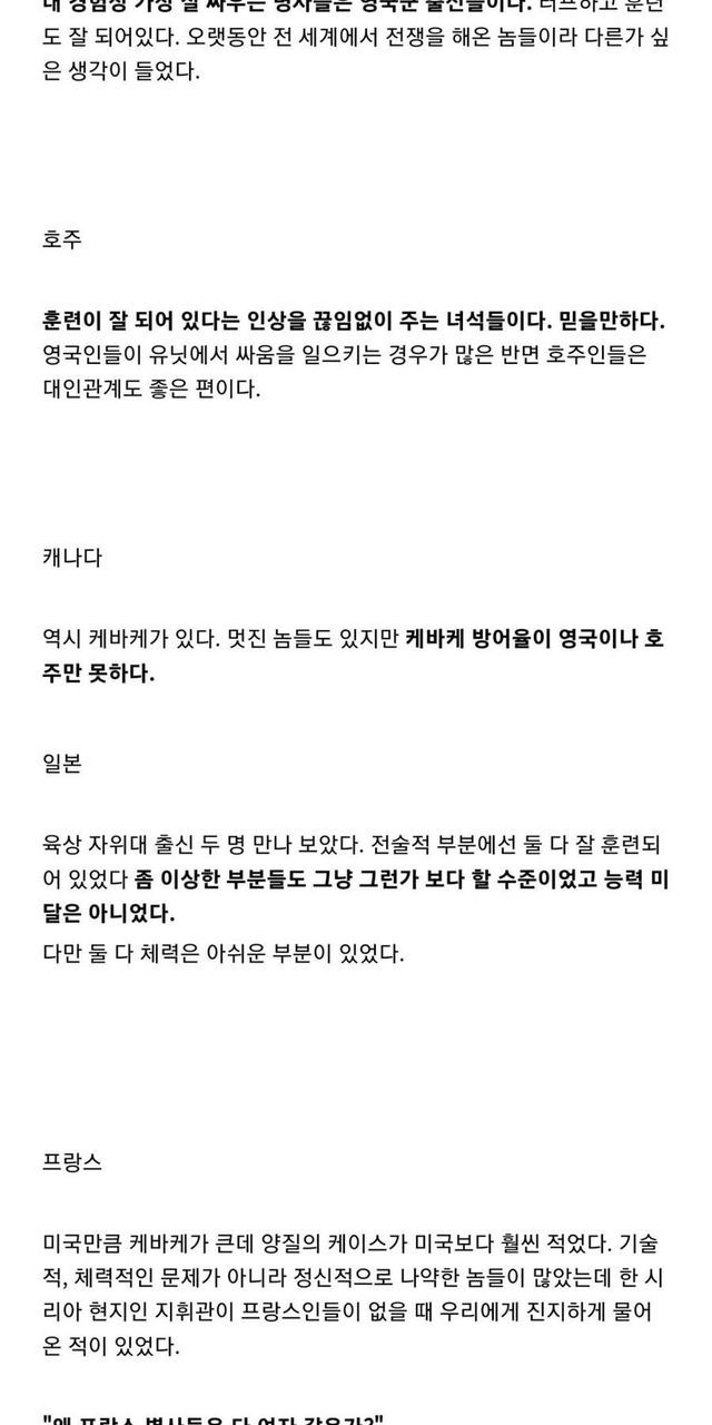 한국인 용병이 평가하는 각국 정규군 출신 용병.jpg