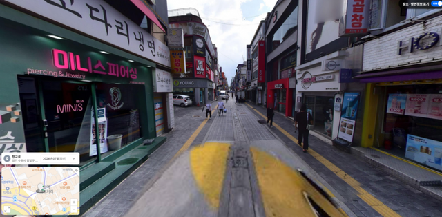 거리뷰 버튼을 누르면 지도 위 거리들이 위와 같이 활성화 되는데
