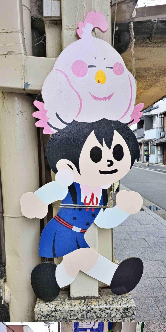 상점가 끝쪽에 있는 타마코와 쵸이의 캐릭터 간판