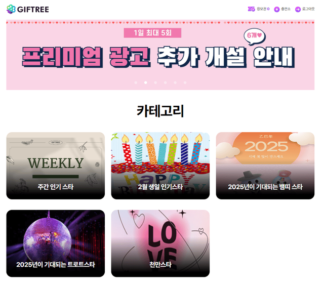 기프트리 홈페이지 화면 / 기프트리