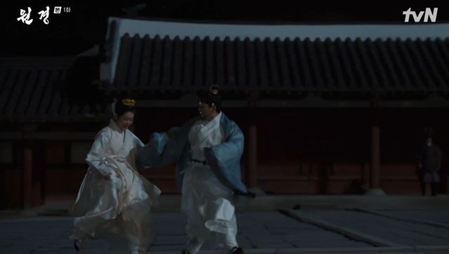 이날 이방원은 왕자의 난 후 마침내 왕위에 올랐고, 부인 정빈 민 씨(차주영)는 왕자의 난을 일으켜 왕권을 세울 수 있게 결정적 역할을 한 공을 높이 사서 중전으로 임명됐다. 그런 가운데 가면 쓴 남자가 춤사위를 선보였다. 바로 이방원이었다. 대신들은 “주상전하 아니십니까”라며 박수를 쳤다. 이어 원경까지 등장, 두 사람은 함께 춤을 추었다. 앞서 두 사람은 “모든 것을 함께 하시겠소? 모든 걸 함께 나눕시다”며 약조했다. 또한 왕자의 난 때 이방원이 “두렵소”라고 토로하자 원경은 “두려워하지 마세요. 오늘 밤 역사는 분명 우리 편입니다”라고 갑옷을 입혀주었다.