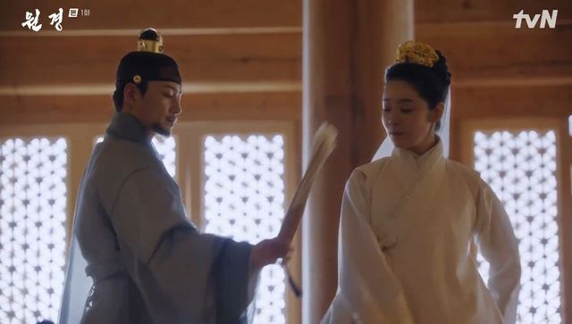 이방원과 원경은 손을 잡고 달려 나가 격한 키스를 했고, 뒤쫓아온 나인들은 다급하게 문을 닫았다. 정상궁은 당황하는 상궁들에게 “사가에서 이미 부부로 살아온 시간이 길었던 분들이라 궁중 예법을 가벼이 여길 수 있다”며 이제라도 법도대로 해야 한다고 강조했다. 이에 상궁은 문밖에서 “왕실 합궁의 목적은 오로지 생산에 있다. 절대 쾌락으로 즐기면 안 된다”고 고했다. 그러나 원경은 “물러가라. 밤새 거길 지킬 셈이냐”고 밝혔다.