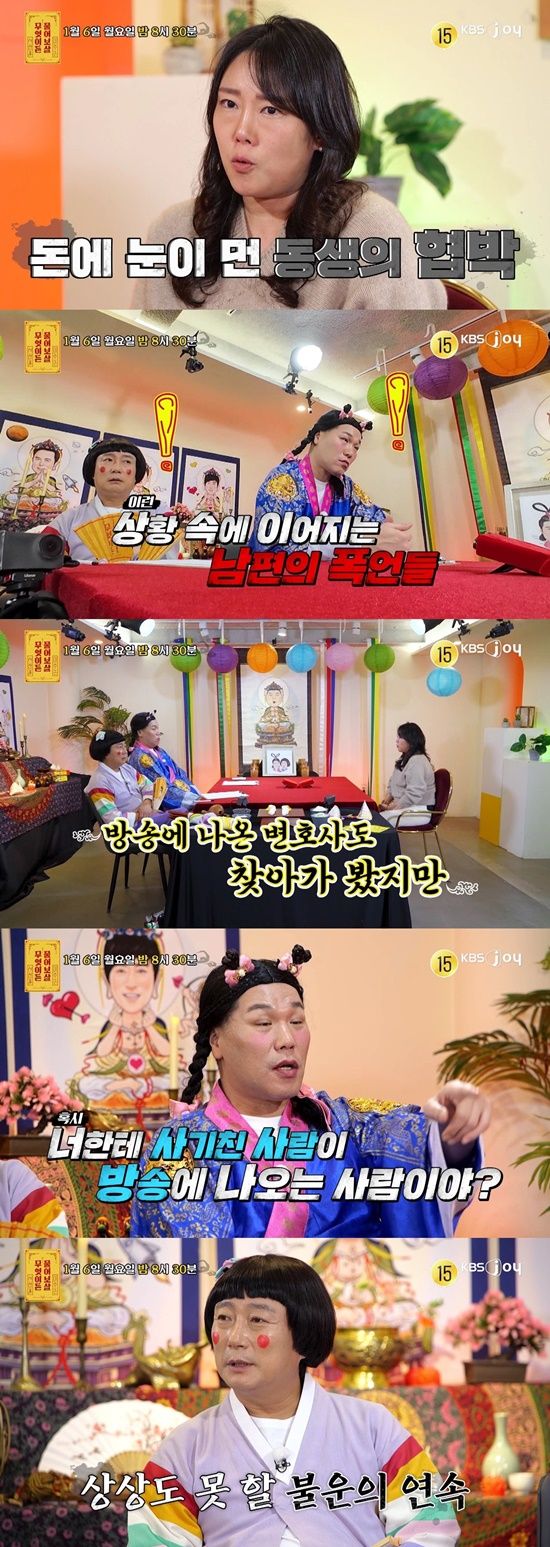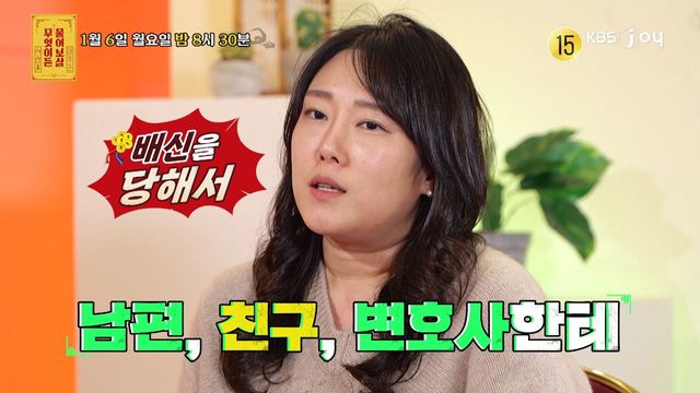 6일 오후 방송되는 KBS JOY '무엇이든 물어보살' 298회에는 가족과 남편, 친구와 변호사에게 배신을 당해 살아가기 힘들다는 사연자가 찾아온다.