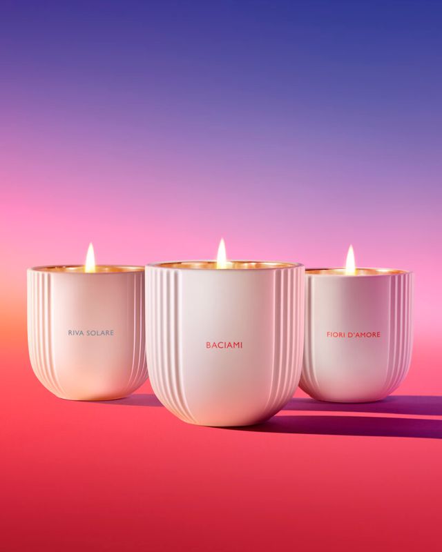 바치아미는 열정으로 채워진 촛불을 의미합니다. 가드니아 향과 중독적인 바닐라의 달콤한 향이 섞여 잊을 수 없는 강렬한 향기를 만들어내죠. 피오리 다모레는 사랑으로 채워진 촛불로, 장미의 고급스러운 향을 라즈베리 향이 부드럽게 감싸며 모던함에 우아함을 더한 향기입니다. 지중해의 에너지로 채워진 촛불, 리바 솔라레는 베르가못의 상큼한 향에 네롤리 향이 섬세하게 어우러져 상쾌한 기분을 만끽할 수 있죠.