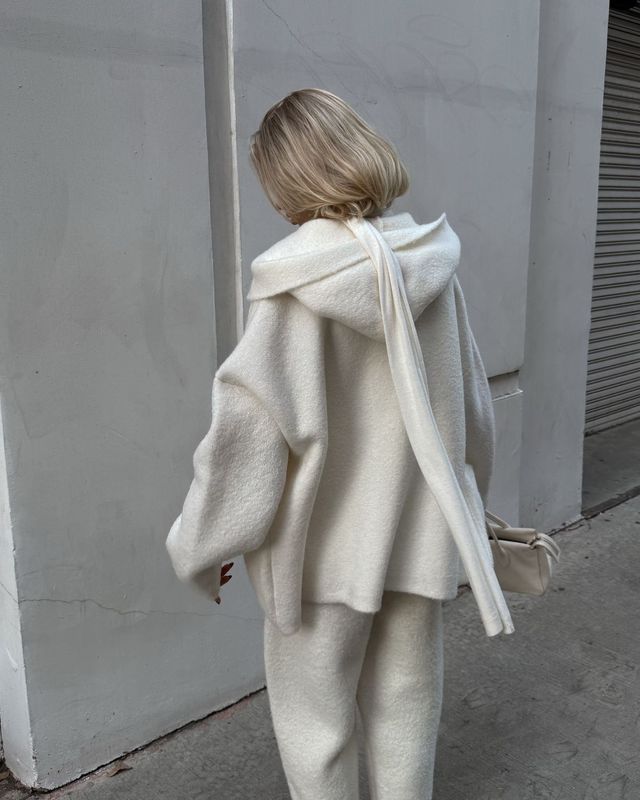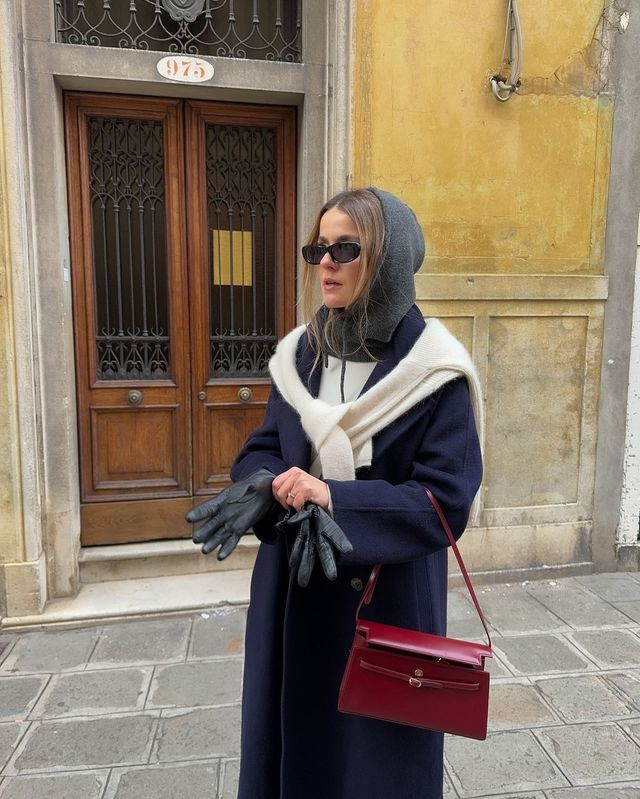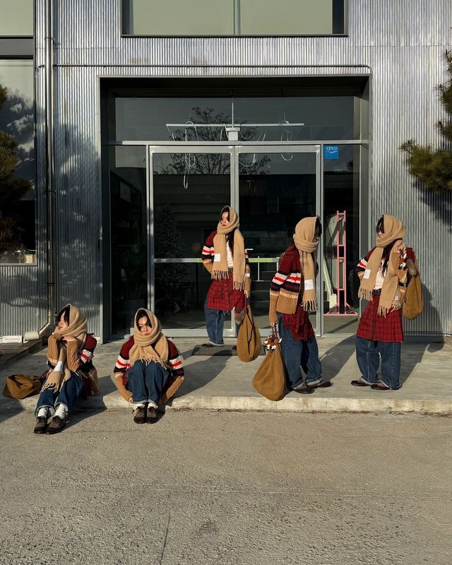때론 넉넉한 사이즈의 니트를 어깨와 목에 두르는 것이 더욱 따뜻하고 스타일리시해 보입니다. 패션 인플루언서