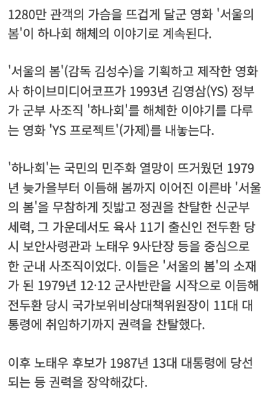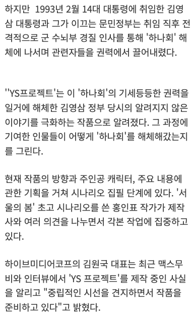 서울의 봄 제작사, ‘김영삼의 하나회 해체’ 영화화