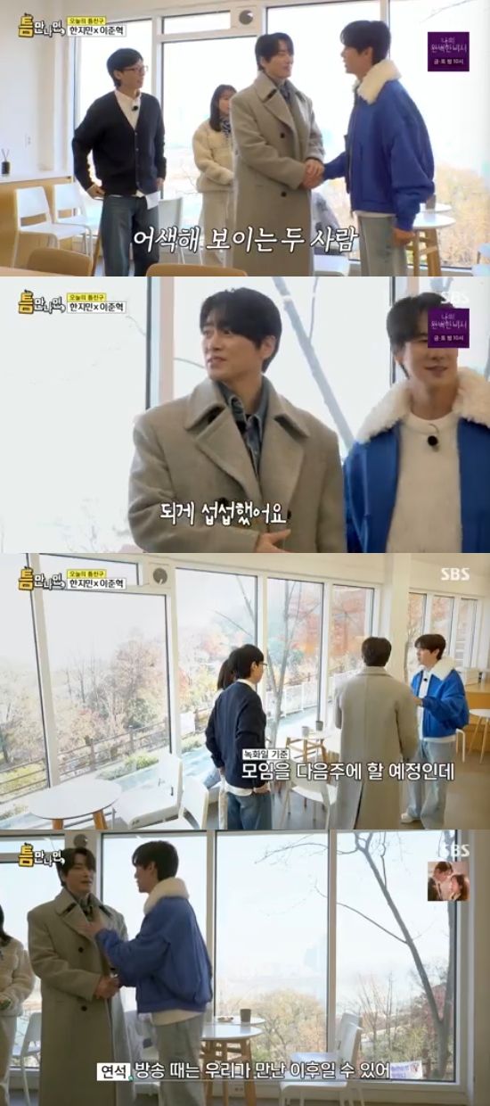 7일 방송된 SBS 예능 프로그램 '틈만나면'에서는 한지민과 이준혁이 '틈 친구'로 출연해 유재석, 유연석과 함께 '틈 주인'을 만나 이야기를 나눴다.
