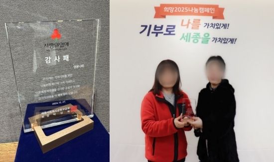 이들은 지난 3년간 1,200만 원을 기부했으며, 이에 그 공로를 인정받아 감사패를 받았다.
