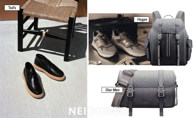 남자의 스타일을 완성시켜줄 백과 슈즈. 디올은 그레이 컬러를 그라데이션한 레더에 하우스의 상징인 오블리크 패턴을 엠보싱 처리한 디올 그래비티 레더 컬렉션을 백 팩, 메신저 백, 클러치 백 등 다양한 버전으로 공개했다. 토즈는 아이코닉한 윈터 고미노 슈즈의 데저트 부츠 버전을, 호간은 스웨이드 어퍼가 특징인 깔끔한 스니커즈를 출시해 포멀한 룩부터 스포티한 룩까지 폭넓게 매치할 수 있다.