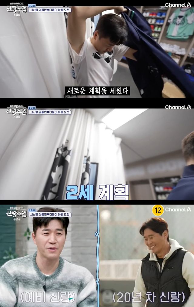 8일 방송된 채널A ‘요즘 남자 라이프-신랑수업(이하 ‘신랑수업’)’ 146회에서는 김종민이 동갑내기 절친이자 ‘오둥이 아빠’인 이동국을 찾아가 ‘2세 계획’ 수업을 받는 것은 물론, 오둥이들과 함께 ‘아빠 시뮬레이션’을 하는 하루가 펼쳐졌다.