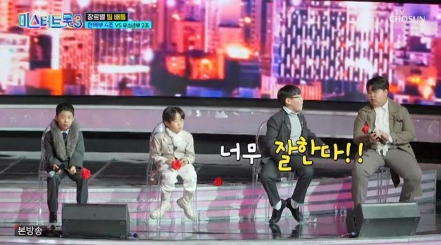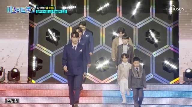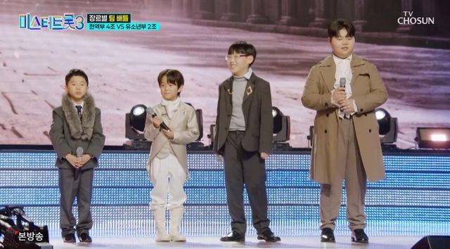 9일 방송된 TV조선 예능 프로그램 ‘미스터트롯3’에서는 장르별 팀배틀에서 현역부 4조와 유소년부 2조가 맞붙었다.