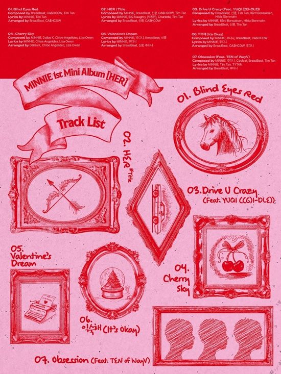소속사 큐브 엔터테인먼트는 10일 공식 SNS 채널을 통해 민니의 첫 번째 미니 앨범 'HER' 트랙리스트를 공개했다.