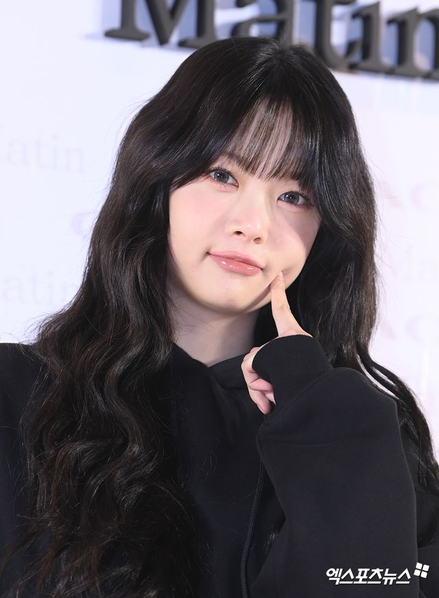 이날 행사에 참석한 르세라핌 홍은채가 포토타임을 갖고 있다.