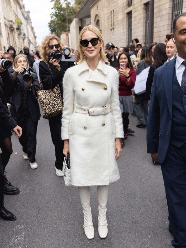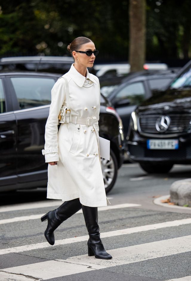 켈리 러더폴드는 몸에 핏되는 벨트 장식 화이트 코트에 화이트 부츠를 매치해 화이트가 가진 특유의 고급스러운 느낌을 강조했고, 패션 인플루언서