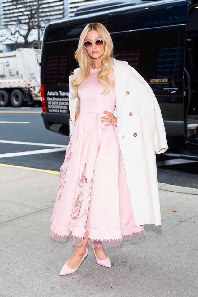 패리스 힐튼은 어떨까요? 핑크를 향한 한결같은 애정을 드러내는 그는 여성스러운 핑크 드레스에 심플한 화이트 코트를 걸쳐 평범한 코트도 자신의 취향에 맞춰 입는 노하우를 보여주었습니다.