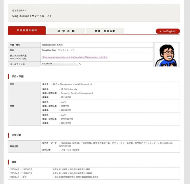 히토츠바시 대학 경영관리연구과 준교수로