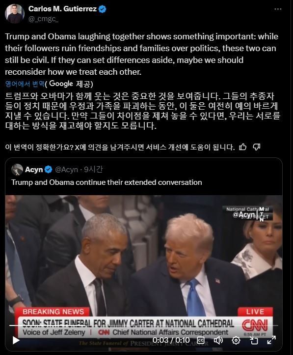 지미 카터 전 대통령 장례식에서 오바마랑 농담따먹기중 ㅋㅋㅋㅋ