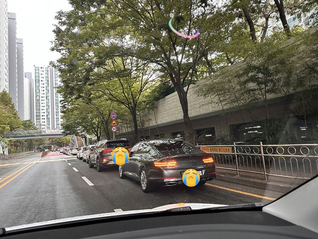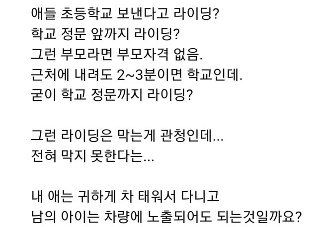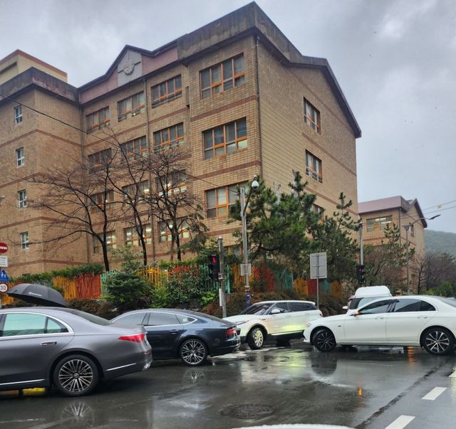 아파트 단지안에 학교가 있다보니 인근 아파트 주민들이 차로 아이들을 등하교 해줌