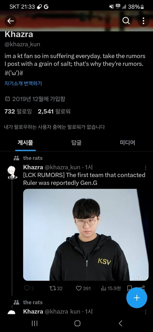 그 룰러가 접촉한 팀이 “젠지”라는 썰이 올라옴