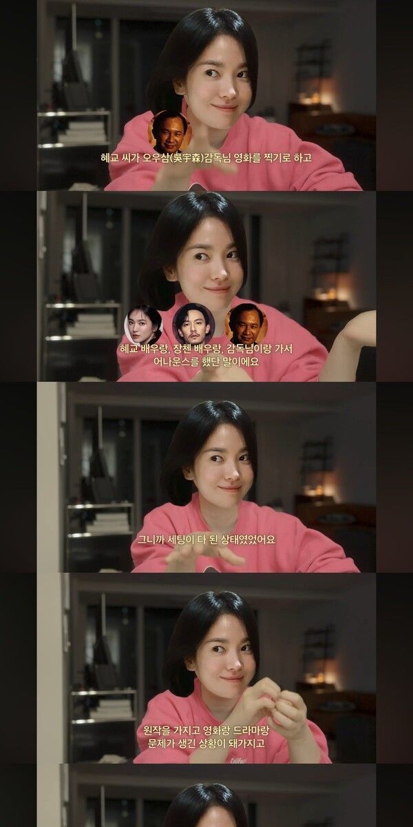 그는 과거 송혜교가 오우삼 감독의 영화 촬영과 칸 영화제 출품을 준비하던 중, 원작 문제로 프로젝트가 중단된 사건을 언급했다.