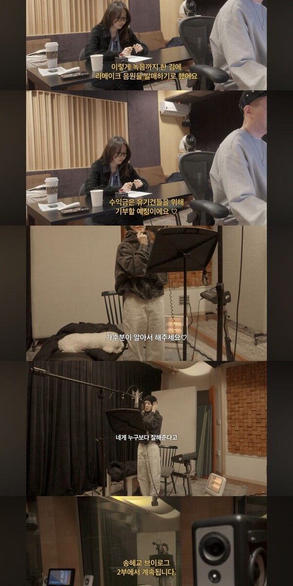 해당 음원은 음원 수익금 전액을 유기견 보호를 위해 기부하기로 하며 송혜교의 선행이 이어졌다.