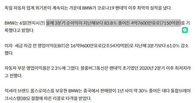 영업이익률도 급격히 악화되서 BMW, 폭스바겐은 2-3% 수준으로 추락..