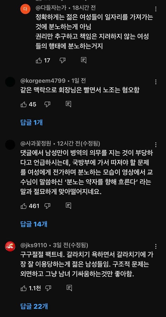한줄요약: 남녀평등 하고 싶으면 여성징병부터 하자구요잇