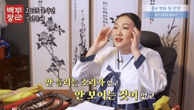 특히, 금전운과 건강운을 강조하며 “건강하려면 야채를 많이 먹고 운동을 꼭 해야 한다”고 반복해 말하며 마치 실제 무속인이 점괘를 풀이하는 듯한 디테일을 보여줬습니다.