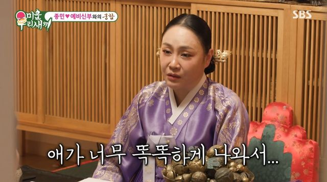무속인은 김종민의 자식운도 봤다. “첫째는 아들일 것 같다. 아들이 종민 씨를 많이 닮을 거다. 기러기 아빠일 가능성이 100%”라고 말했다. 이에 김희철이 “형이 기러기 아빠 되기 싫어하는 데”라고 덧붙이자, 무속인은 “아이가 굉장히 똑똑하다. 예비 신부 사주에 현침살이 많아서다. 자식 교육에선 철두철미할 거다. 아이가 의사나 검사, 판사 이런 쪽으로 크게 될 것 같다”고 말했다.