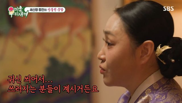 점사를 보러 신당 안으로 들어간 김종민은 40년 경력의 무속인이 뿜어내는 강렬한 기운에 긴장감을 감추지 못했다. 무속인은 “상담하다 보면 귀신에 씌어서 쓰러지는 사람도 많다”며 “여기에는 평범한 사람은 안 온다”고 설명했다.