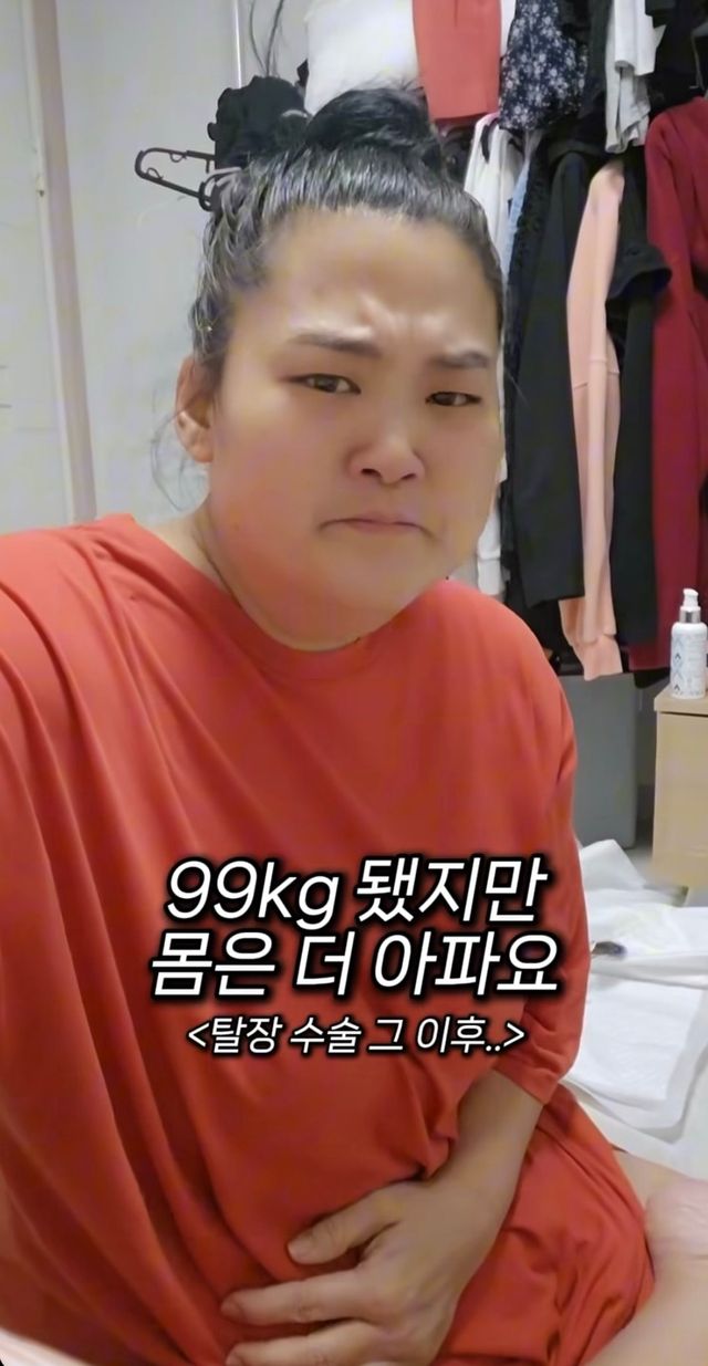 이어 "오랜만에 집에 오니까 집도 엉망이라 가사 일을 하고 잤더니 몸에 무리가 오기도 했고, 통증이 더 심해졌다"면서 "탈장수술하고 나서 아빠다리 자세를 하고 있는 것조차도 힘들고, 오래 앉아있을 수가 없다"고 말하며 수술 후 후유증에 대해 언급했다.