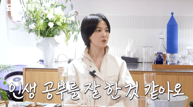 정재형의 소개를 받고 등장한 송혜교는 “주변에서 단단하고 믿을만한 사람이라는 얘기가 많이 나온다. 예전엔 애기애기였다면 지금은 되게 편안해 보인다”는 정재형의 말에 “요즘에 그런 얘기 많이 듣는다”면서 “살면서 좋은 경험들도 많이 했고, 여자로서 또 배우로서 힘든 경험들도 있었고 행복한 경험들도 있었고 그런 여러 가지 경험들을 다 해서 인생의 공부를 잘한 것 같다”고 말했다.