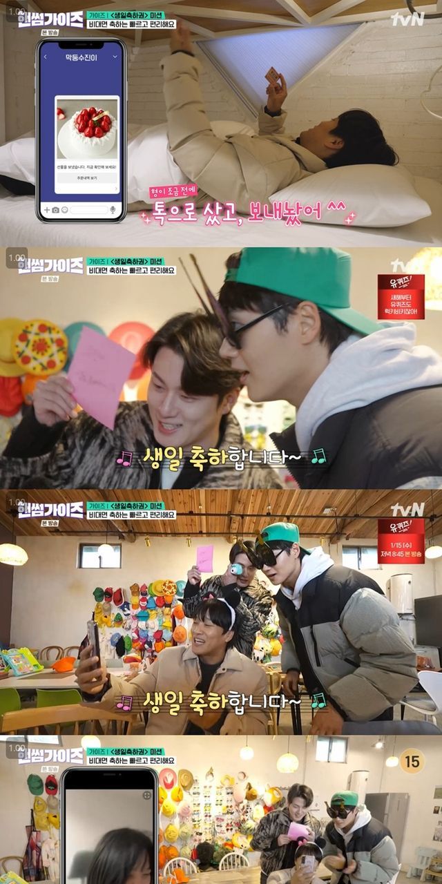 이날 '가이즈' 팀 차태현과 신승호, 오상욱은 이번 주 생일인 사람을 찾아 케이크 선물을 하며 축하를 해줘야하는 '생일축하 미션'을 뽑아 수행해야 했다.