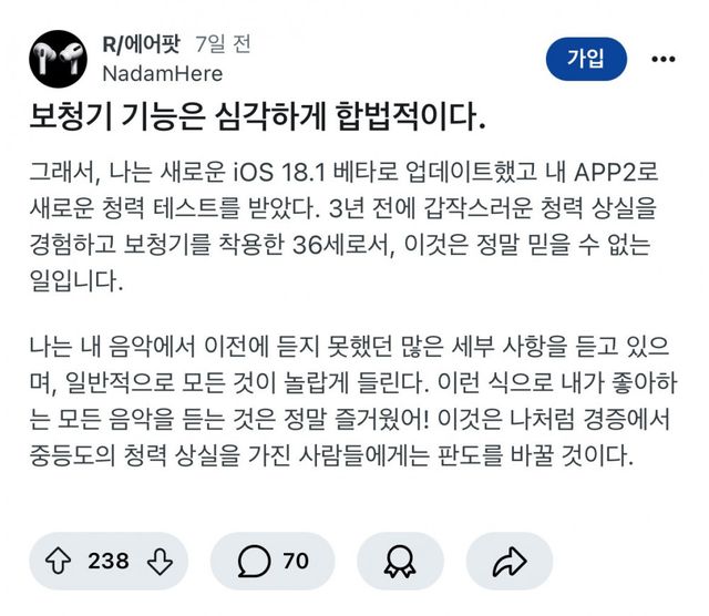 에어팟프로2 를 보청기처럼 사용할 수 있게됨