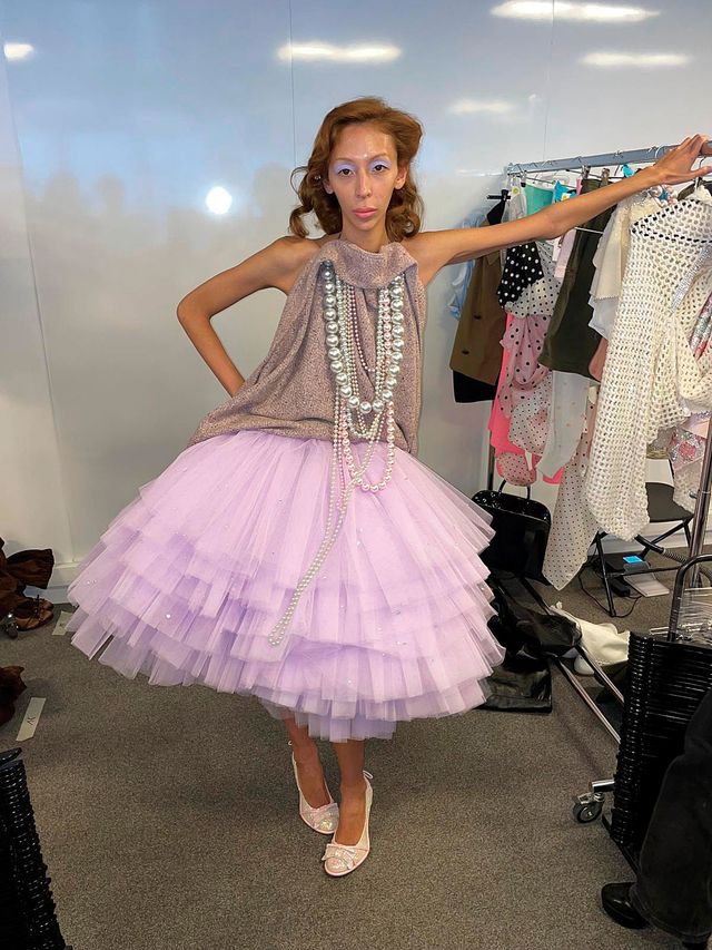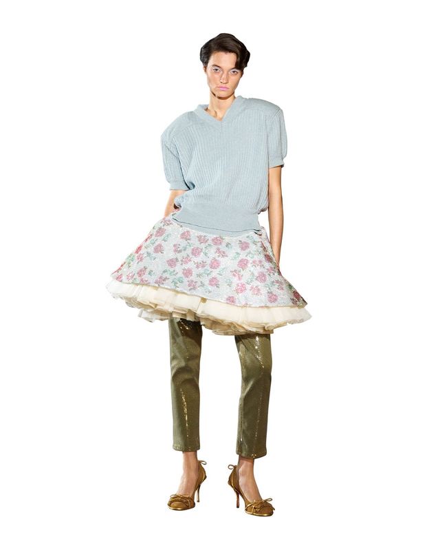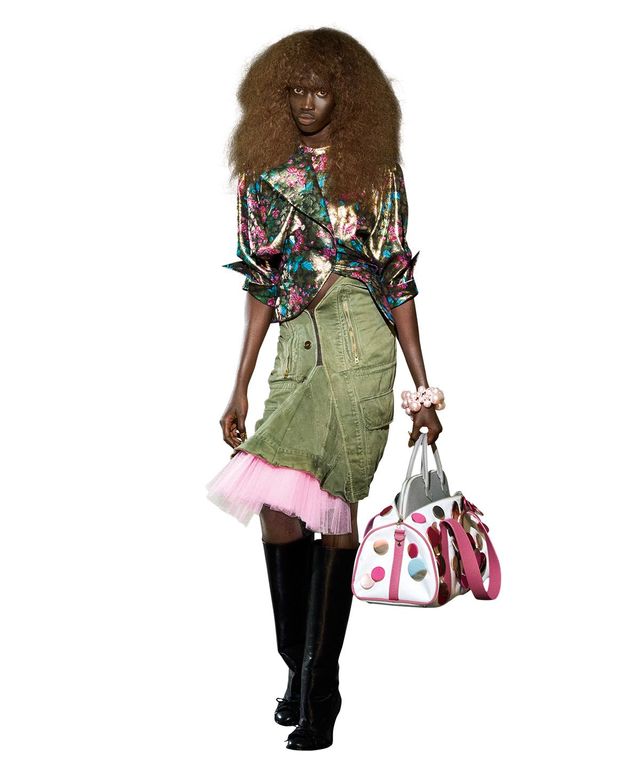 올인의 시작은 이러하다. 바론이 2015년 매거진을 창간했고 여기에 아우구스트가 조인해 화보를 스타일링했다. 그들은 중고 매장을 돌아다니며 빈티지한 보물을 찾는가 하면 잡지에 자신들만의 룩을 DIY해 보여주었고, 결국 새로운 피스를 디자인하며 그들의 컬렉션을 선보이기에 이르렀다. 이들은 주로 팝스타나 사교계에 진출하는 여성들 같은 상상 속의 인물을 그린다. 예를 들어, 여러 가지 재료가 믹스된 드레이핑 드레스나 코스튬 주얼리로 장식한 진, 혹은 슬리브가 붙어 있어 힐처럼 보이는, 그 유명한 레벨(Level) 부츠를 떠올려보라. “우리의 기준은 확고해요. 우리가 만드는 것이 뭔가를 떠올리게 하고 싶지 않죠.” 바론이 말한다. “어쩐지 시도해보고 싶고, 우리가 느끼기에 현실에 없는 걸 만들고 싶어요.” 올인의 2025년 봄 컬렉션은 1988년 영화 〈워킹 걸〉과 금융회사의 비서이지만 자신을 잘나가는 경영자처럼 포장한 주인공 테스에게서 부분적으로 영감을 받았다고 아우구스트가 덧붙인다. “전혀 다른 배경을 넘나들거나 누군가를 흉내 내려는 캐릭터, 그리고 새로운 정체성을 가지려다 발생하는 실패 같은 것에서 영감을 얻었죠.”