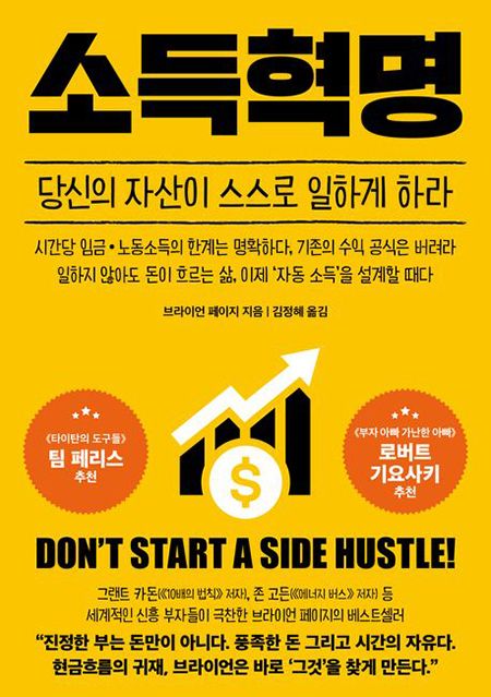 <소득혁명>은 단순히 돈을 많이 버는 기술을 가르쳐주는 책이 아니다. 돈과 시간, 두 가지 풍요를 모두 누리는 삶을 원하는, 사랑하는 사람과 함께하는 삶을 꿈꾸는 이들을 위한 책이다. 많은 돈이 아닌 지속적이고 반복적인 현금 흐름으로 인생을 지켜줄 책을 찾는다면 이 책만큼 적임이 없을 거라 확신한다.