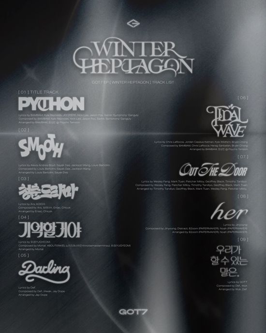 카카오엔터테인먼트는 13일 0시 갓세븐 공식 SNS를 통해 새 미니앨범 '윈터 헵타곤(WINTER HEPTAGON)'의 트랙리스트 이미지를 공개했다.
