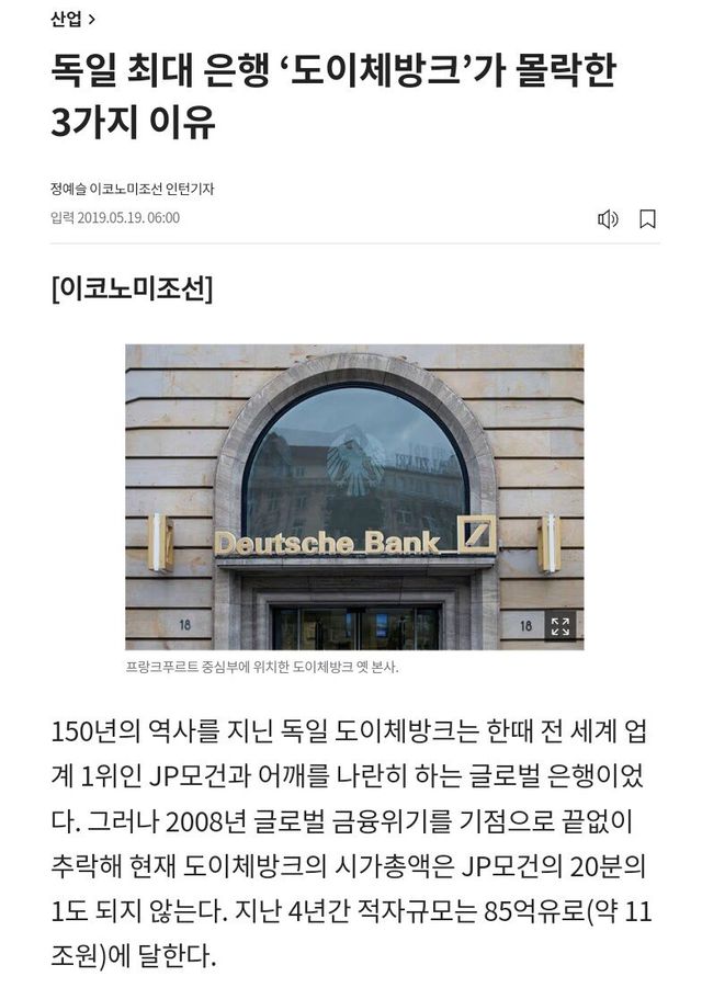 유럽은 물론 세계 최대규모를 자랑했던 독일 은행들 특히 도이체방크가 그럼.