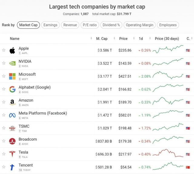 [ 세계 10대 IT기업중 8개는 미국, 나머지는 중국과 대만 ]