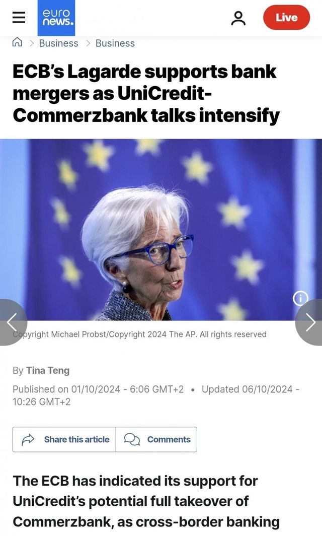 [ 유럽중앙은행도 지지하는 유니크레딧-코메르츠방크 합병 ]